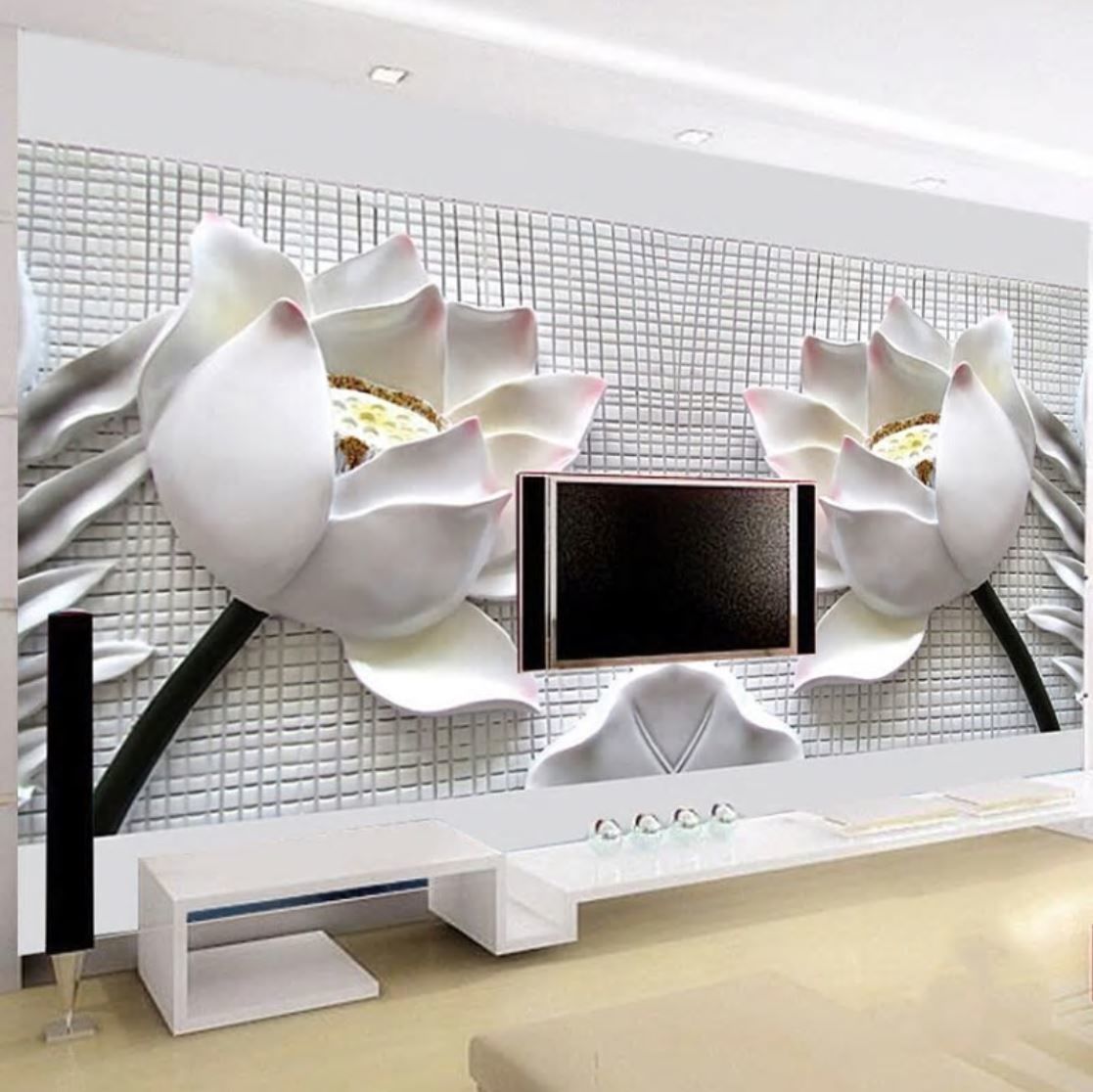 3d 壁紙 1ピース 1 トリックアート 蓮の花 白 Diy リフォーム インテリア 部屋